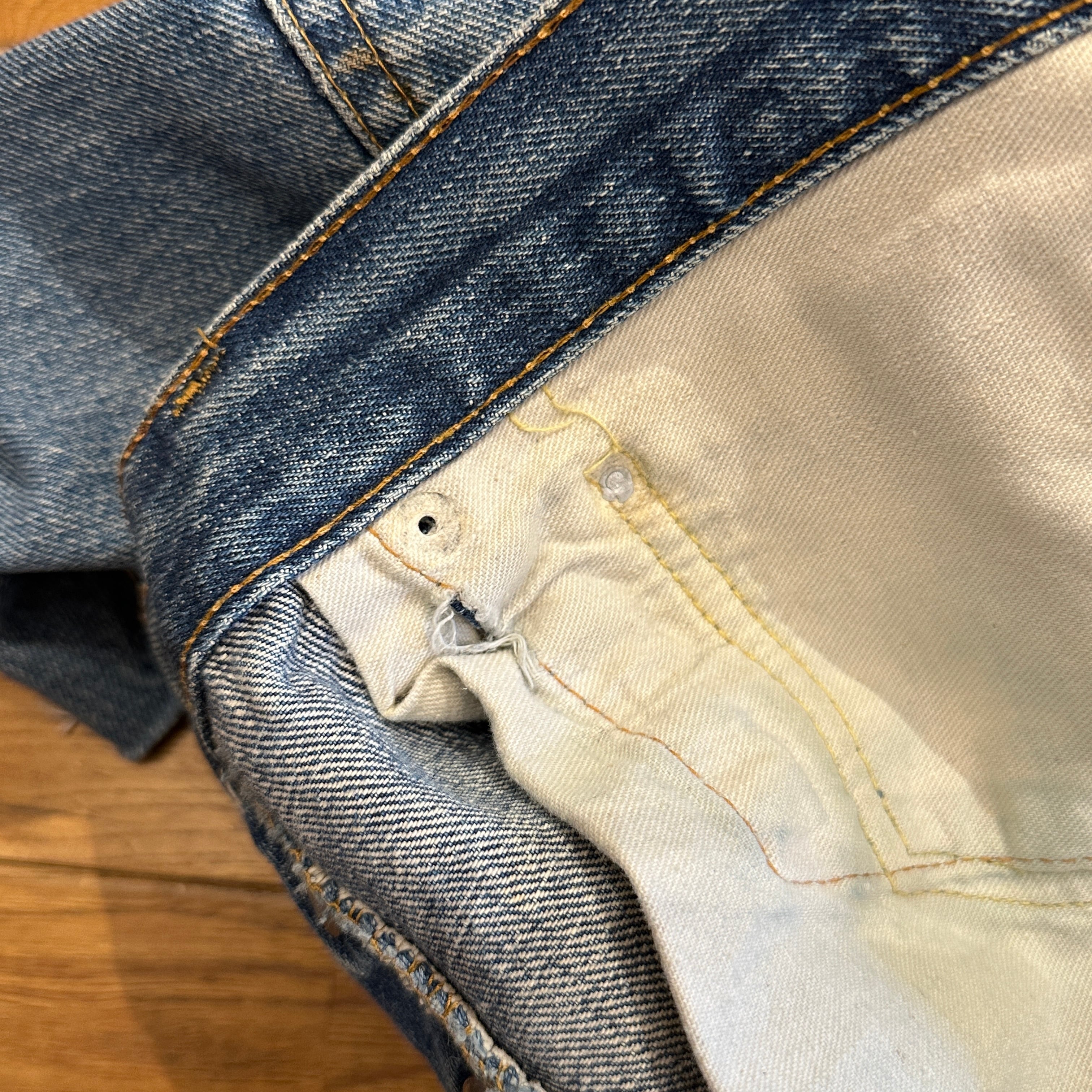 右ポケットのリベットが一か所、裏リベットが数か所欠損しております。