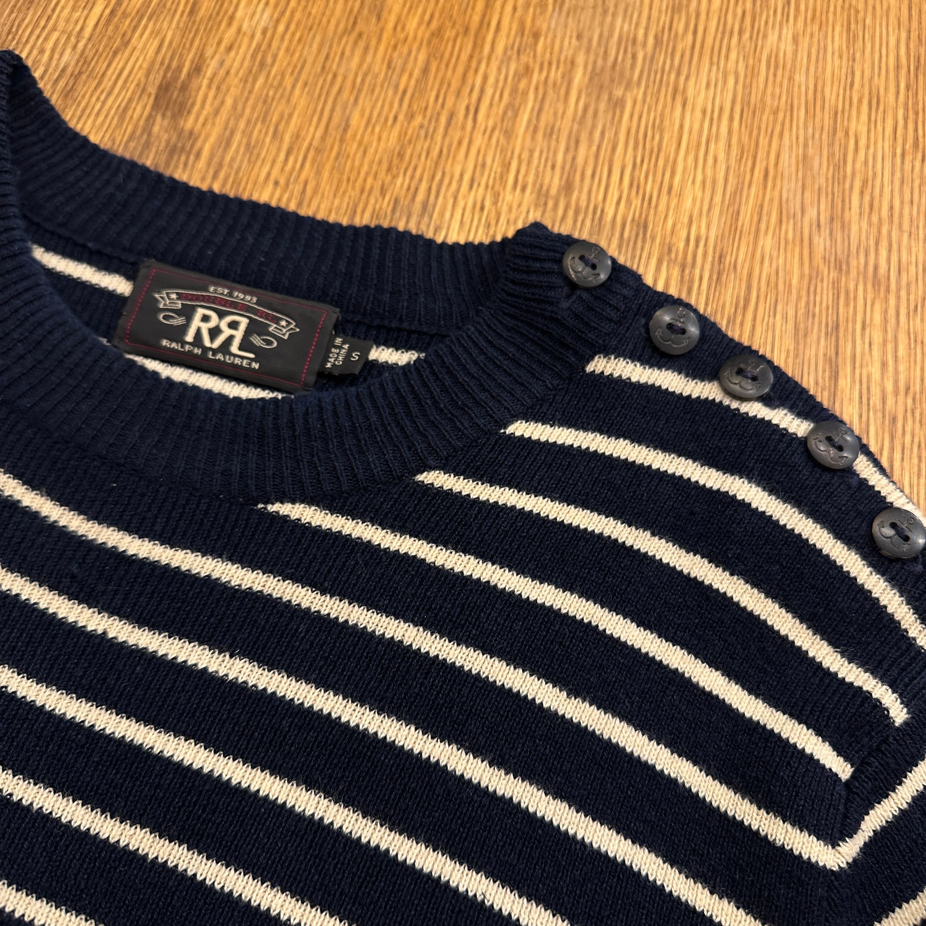 RRL Cotton Linen Border Sweater old model