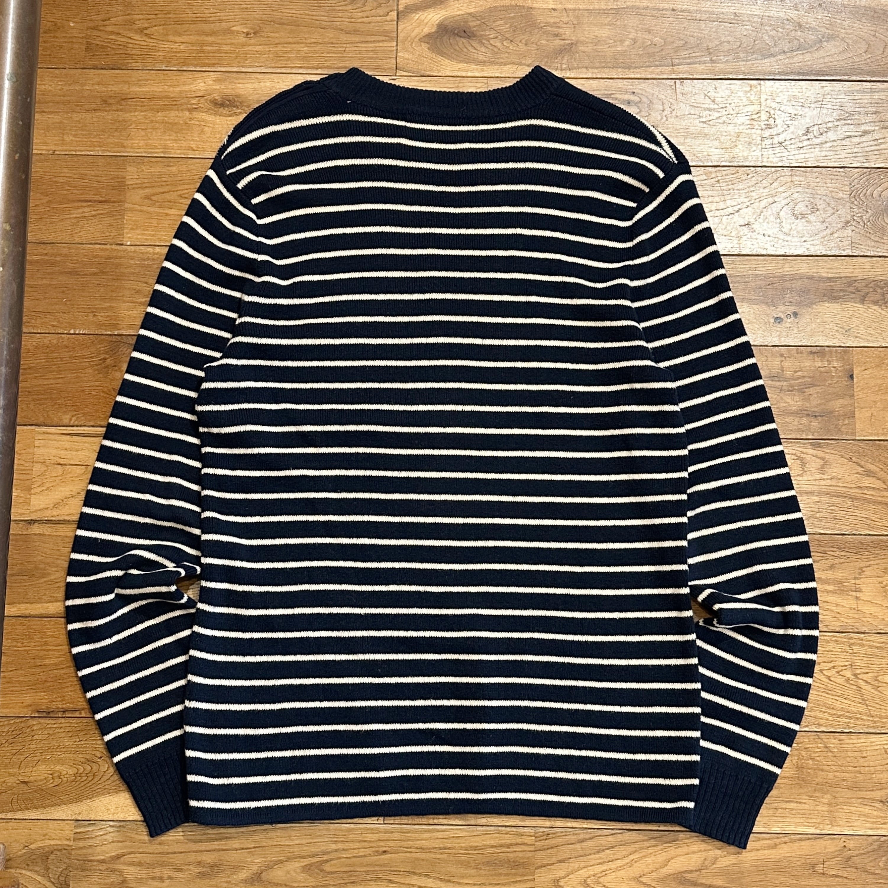多少の毛羽立ちや毛玉、袖や胸付近に薄シミ等はありますが、その他ダメージもなく、まだまだ十分にご着用いただける状態です。