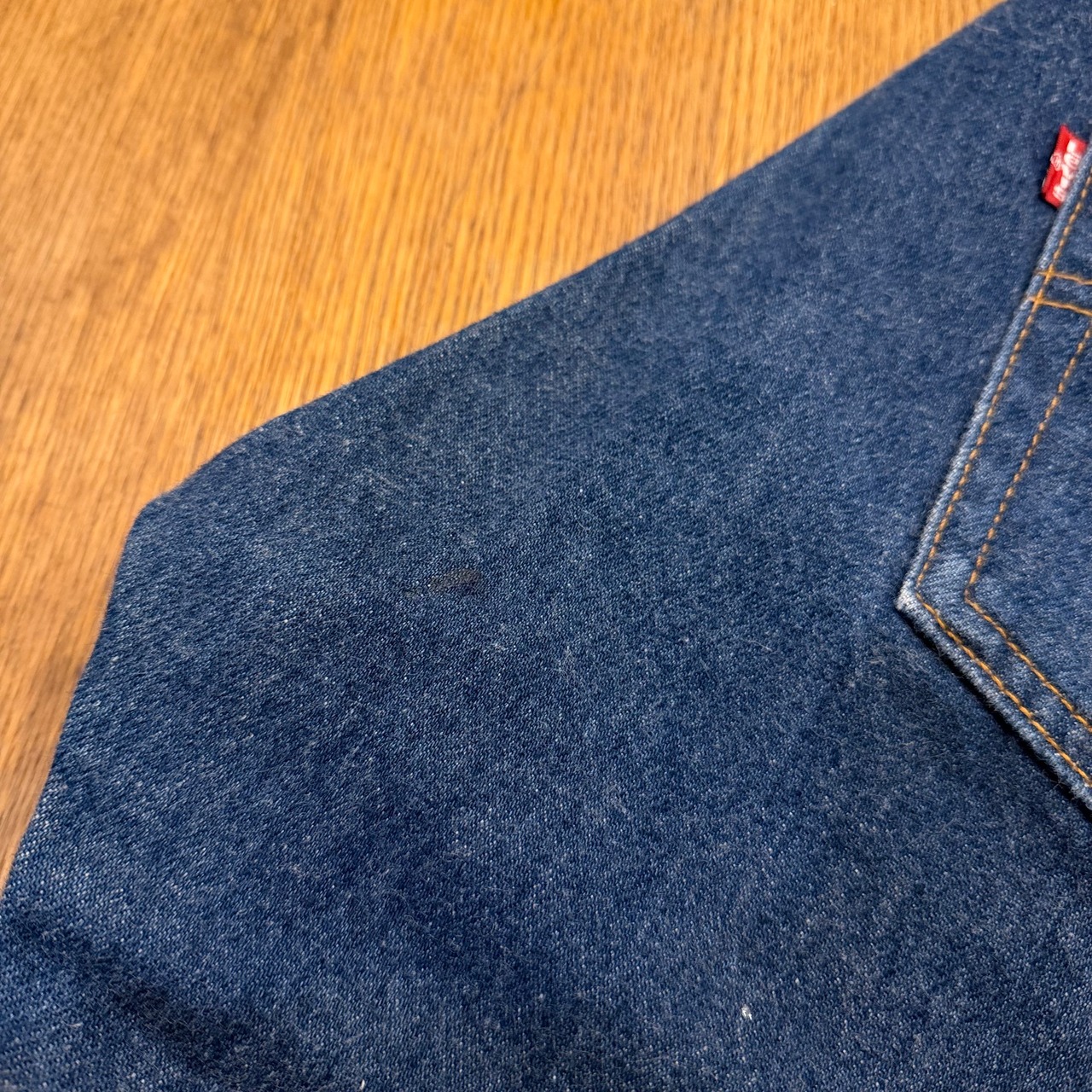 画像の様特有のスレやアタリ・毛羽立ち、お尻に薄シミ、薄ヤケはございますが、その他ダメージや汚れはなくまだまだ十分にご着用いただける状態です。