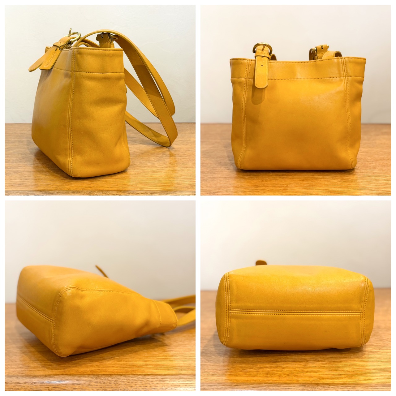 画像の様に各所にスレ・小キズ、型崩れ、年代相応の薄汚れや小シミなどはございますが、その他ダメージもなく、まだまだ十分にご使用いただける状態です。